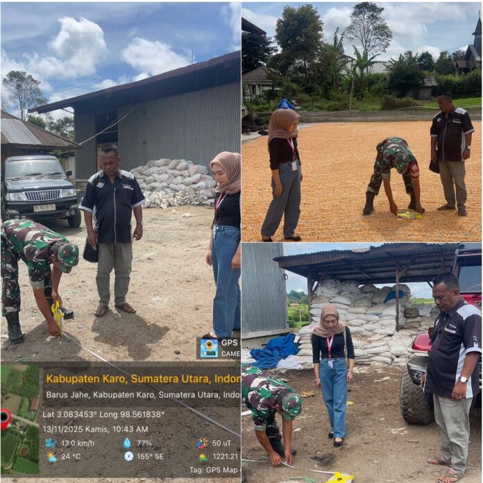 Kegiatan pengukuran turut melibatkan Kepala Desa Bulan Jahe, Bapak Perdinan Sitepu, serta pengurus Koperasi Merah Putih antara lain Ketua Jonson Sembiring, Bendahara Cahaya Tarigan, dan Bisnis Asisten Linda.
