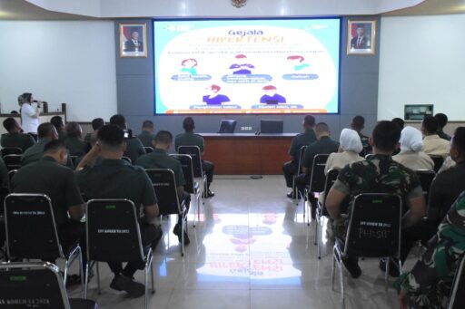 Warta In | Pelembang – Segenap Prajurit dan PNS Korem 044/Gapo menerima penyuluhan kesehatan dari Denkesyah 02.04.04 Palembang, bertempat di Aula Makorem 044/Gapo Jln. Jend. Sudirman Km 4 Kota Palembang, Senin (24/2/2025).