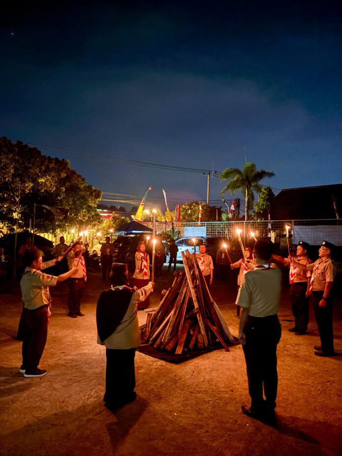 Suasana semakin khidmat saat malam penutupan dilanjutkan dengan upacara api unggun. Di tengah gelapnya malam, nyala api unggun menjadi simbol semangat, kebersamaan, dan jiwa pengabdian yang terus hidup dalam diri setiap pembina pramuka.