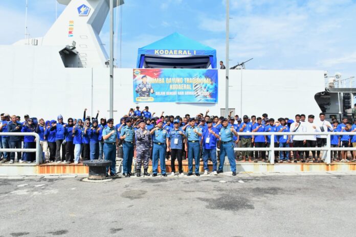 TNI AL, Belawan | warta.in – Komandan Komando Daerah Angkatan Laut I (Dankodaeral) I Laksamana Muda TNI Deny Septiana, S.I.P., M.A.P., melaksanakan rangkaian kegiatan penyambutan Panglima Komando Armada Republik Indonesia (Pangkoarmada RI) Laksamana Madya TNI Dr. Denih Hendrata, S.E., M.M., beserta Ketua Gabungan Jalasenastri Koarmada RI Ny. Kiki Denih Hendrata, yang diawali dengan penjemputan di Ruang VIP Transit Bandar Udara Internasional Kualanamu, dilanjutkan penyambutan resmi di Mako Kodaeral I Belawan, serta pelaksanaan Lomba Dayung Sampan Tradisional berkolaborasi dengan Himpunan Nelayan Seluruh Indonesia (HNSI) Sumut, serta Bakti Sosial Pembagian Sembako di Kampung Nelayan Belawan dan masyarakat nelayan sekitar Mako Kodaeral I, sebagai bagian dari rangkaian peringatan HUT Armada RI Ke-80 Tahun 2025, Kamis (13/11/2025).
