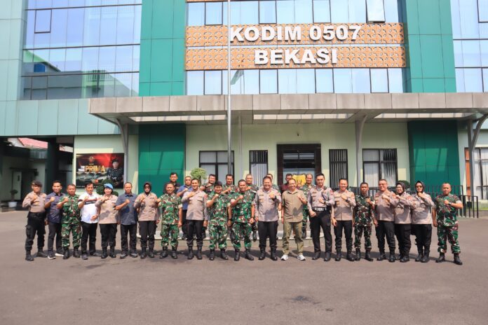 Rombongan Polri disambut hangat oleh Komandan Kodim (Dandim) 0507/Bekasi Kolonel Arm Krisrantau Hermawan, S.H., M.I. Pol., beserta para pejabat utama Kodim.
