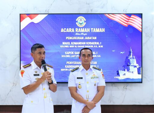 TNI AL, Belawan | warta.in – Komandan Komando Daerah Angkatan Laut I (Kodaeral I) Laksamana Muda TNI Deny Septiana, S.I.P., M.A.P., memimpin acara Pengukuhan Jabatan Wadan Kodaeral I Kolonel Mar Ali Bahar Saragih, S.E., M.M., Kapoksahli Kodaeral I Kolonel Laut (P) Fajar Tri Rohadi, S.E., dan Penyerahan Jabatan Kadisharkan Kodaeral I Mayor Laut (T) Anwar Syafii, M.Tr. Opsla., kepada Komandan Kodaeral I, bertempat di Makodaeral I, Jalan Serma Hanafiah No.01 Belawan, Sumatera Utara, Kamis (04/09/2025).