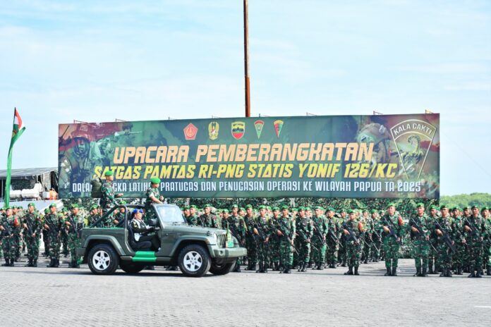 Upacara ini dipimpin oleh Pangdam I/BB Mayjen TNI Rio Firdianto. Dalam amanatnya, Pangdam I/BB menyampaikan bahwa tugas dari Satgas Pamtas RI-PNG Statis Yonif 126/KC di Sektor Selatan Tahun 2025 ini ialah menjaga kedaulatan negara dan mencegah masuknya ancaman dari luar. Disamping itu, mempererat hubungan baik antara Indonesia dan Papua New Guinea, terutama dalam hal pengaman wilayah perbatasan.