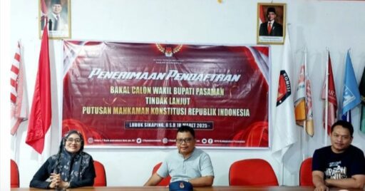 “Hari ini resmi dibuka pendaftaran bakal calon wakil bupati Pasaman atau pergantian calon terdiskualifikasi tanggal 8 sampai dengan 10 Maret 2025,” terang Juli Yusran di Kantor KPU Pasaman, ujarnya