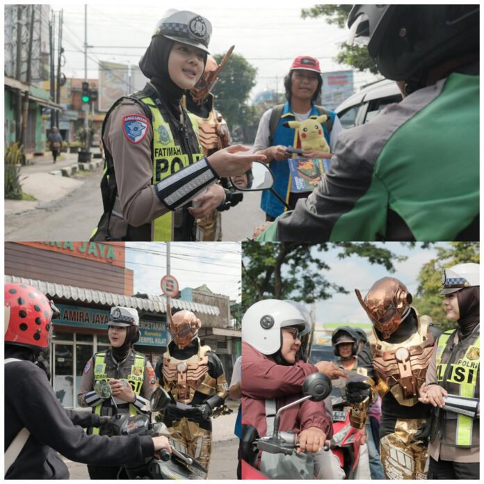 Bukan sekadar penindakan dan teguran, kali ini Polisi turun ke jalan dengan tampilan berbeda: mengenakan kostum super hero.