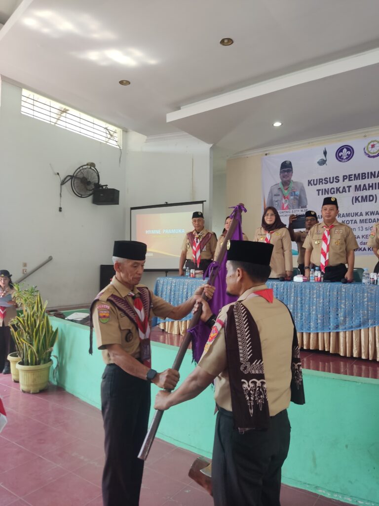 Dalam acara tersebut diserahkan Pataka Pusdiklatcab dari Kapusdiklatcab Kota Medan kepada Ketua Tim Pelatih. Dilanjutkan penyematan tanda peserta oleh Kak Disti dan Kak Lili kepada perwakilan peserta.