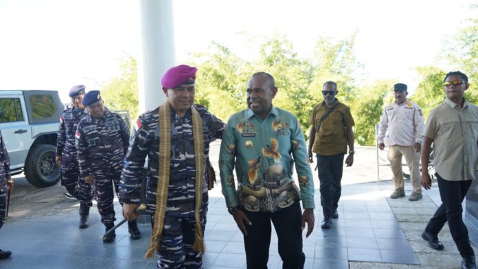 TNI AL, Jayapura, 8 Novemberv2025 | warta.in – Gemuruh ombak di Pelabuhan Sarmi seolah memberi salam hormat ketika Komandan Komando Daerah Angkatan Laut (Dankodaeral) X Mayjen TNI (Mar) Werijon, M.Han., CIQnR., CIQaR., menapakkan kaki di Bumi Pesisir Utara Papua, dalam rangka Kunjungan Kerja (Kunker) ke wilayah Lanal Sarmi. Kedatangan Dankodaeral X disambut hangat oleh Mayor Laut (P) Aris Hendriyatno (Komandan Lanal Sarmi), beserta seluruh prajurit yang berbaris menyambut kedatangan Dankodaeral X.
