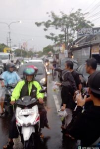 Seluruh paket disusun dan didistribusikan secara tertib oleh tim relawan dengan tetap memperhatikan kelancaran arus lalu lintas.