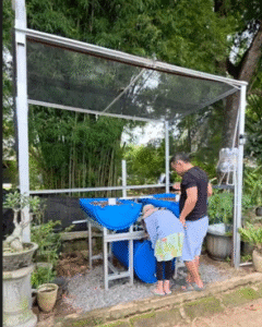 “Berawal dari hobi memelihara ikan dan bertanam, kenapa tidak dijadikan sebagai cuan, dengan memanfaatkan lahan yang ada, jika hasil panennya berlimpah bisa buat bagi-bagi tetangga juga”. Ujar Cak Ikal saat di temui dikediamanya di Perumahan BSR Tangerang, Saat sedang merawat aquaponik miliknya. (Selasa, 16 Desember 2025)