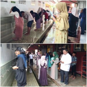 Ket foto : Praktik wudhu yang dilakukan oleh siswa-siswi dan dinilai oleh Dewan Guru.