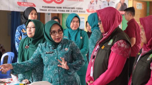 Kota Bekasi – Ketua TP PKK Kota Bekasi, Ibu Wiwiek Hargono Tri Adhianto bersama Sekretaris TP PKK Kota Bekasi, Wuri Handayani, melaksanakan monitoring penilaian lapangan pada lokasi kedua dalam rangka Anugerah Gapura Sri Baduga. Kegiatan ini berlangsung di kawasan Taman Pojok Reduce, Reuse, Recycle (3R) RW 09, Kelurahan Jatisari, Kecamatan Jatiasih, yang turut dihadiri Lurah Jatisari, Ketua TP PKK Kecamatan Jatiasih serta Ketua TP PKK Kelurahan Jatisari.