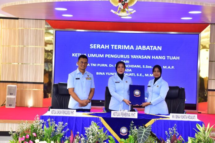“Serah terima jabatan Ketua Umum Yayasan Hang Tuah,(02/12/25) bukan sekadar pergantian kepemimpinan, tetapi juga merupakan bagian dari validasi organisasi untuk memudahkan rentang kendali khususnya yang berada di daerah-daerah yang saat ini dijabat oleh jalasenastri, sehingga proses transformasi organisasi semakin profesional, akuntabel, dan adaptif terhadap tantangan zaman, tanpa meninggalkan nilai-nilai luhur yang telah menjadi jati diri Hang Tuah : kejujuran, keberanian, pengabdian, dan keteladanan”, demikian sambutan Ketua Pembina Yayasan Hang Tuah Ny. Fera Muhammad Ali pada serah terima Jabatan Ketua Umum Yayasan Hang Tuah dari Laksda TNI (Purn) Dr. Dani Achdani, S.Sos., S.E., M.A.P kepada Ny. Bina Yunita Hidayati, S.E., M.M yang berlangsung di Ballrom Pengurus Pusat Jalasenastri Jakarta.