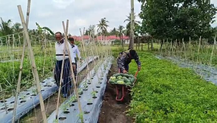 TNI AL, Bandung | warta.in – Pangakalan TNI AL (Lanal) Bandung dalam hal ini Pos TNI AL Pangandaran melaksanakan panen parsial tanaman ketahanan pangan jenis semangka (Citrullus Lanatus) yang ditanam di lahan TNI AL seluas 15.000 meter persegi atau 1,5 Hektar di Dusun Bojongsalawe, Desa Karang Jaladri, Kecamatan Parigi l, Kabupaten Pangandaran, Selasa (30/09/2025).