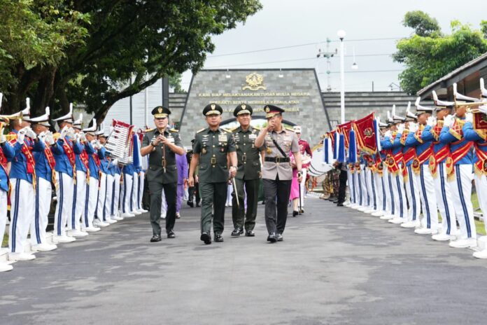 (Puspen TNI). Panglima TNI Jenderal TNI Agus Subiyanto bersama Kapolri Jenderal Pol. Listyo Sigit Prabowo memimpin Upacara Wisuda Prajurit Taruna Akademi TNI dan Bhayangkara Taruna Akademi Kepolisian (Prabhatar) Tahun 2025 di Lapangan Sapta Marga, Akademi Militer (Akmil), Magelang, Jumat (28/11/2025).