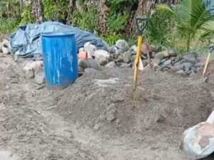 Pekerja proyek,” saat dikonfirmasi awak media, ia menyampaikan bahwa kami hanya pekerja, boss proyeknya Arifin, kami tidak tahu apa apa kami cumah bekerja, ini kerjaan kami berhenti dikarenakan cuaca hujan, Jelas pekerja proyek.