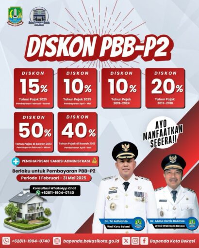 Kebijakan ini berdasarkan Keputusan Wali Kota Bekasi Nomor 900.1.13.1/Kep.69-Bapenda/I/2025 tentang Pemberian Insentif Berupa Pengurangan Pokok Ketetapan dan Penghapusan Sanksi Administratif Pembayaran PBB-P2.