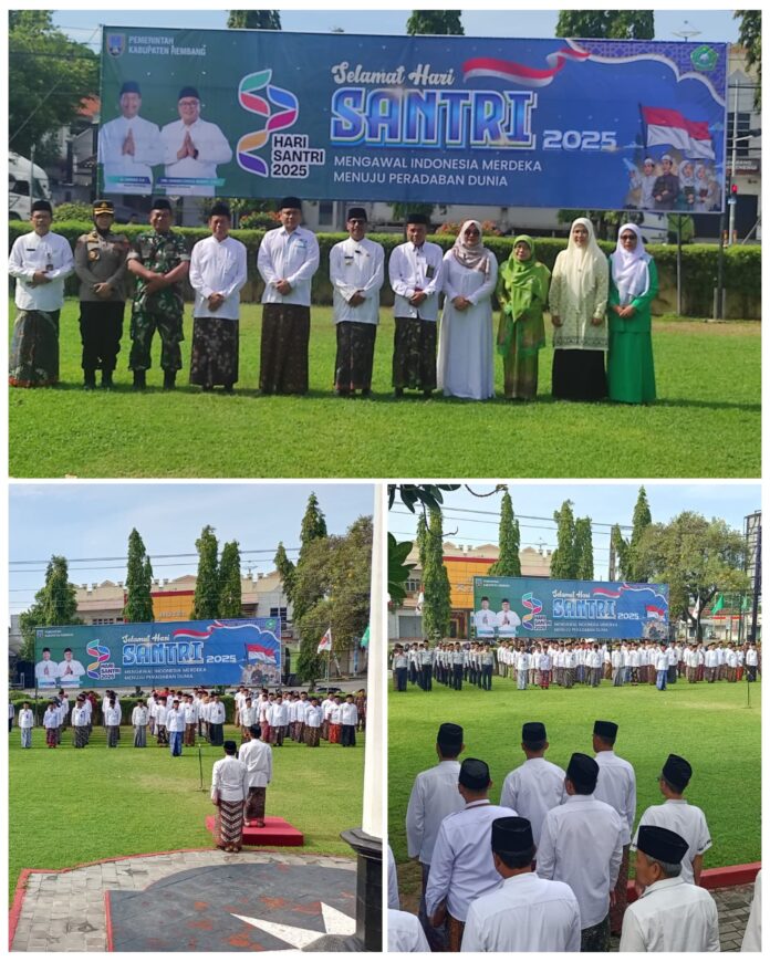 Dalam rangka memperingati hari bersejarah tersebut, pemerintah Kabupaten Rembang, Jawa Tengah melaksanakan upacara Hari Santri Nasional pada, Rabu (22/10/2025). Upacara berlangsung di halaman Kantor Bupati Rembang dan dipimpin langsung oleh Bupati Rembang, Harno, SE, Peringatan Hari Santri 2025 mengusung tema “Mengawal Indonesia Merdeka, Menuju Peradaban Dunia”
