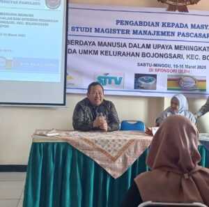 Tangerang Selatan | 16 Maret 2025 | Wartain Banten: Dalam rangka meningkatkan kapasitas dan kemampuan pelaku Usaha Mikro, Kecil, dan Menengah (UMKM), dilaksanakan kegiatan pengabdian kepada masyarakat oleh Program Studi Magister Manajemen, Program Pascasarjana, Universitas Pamulang Tangerang Selatan, yang bekerja sama dengan beberapa sponsor, yaitu Tirta Sasmita, Lab Store, SJTV, dan Bank Sehat Sejahtera.
