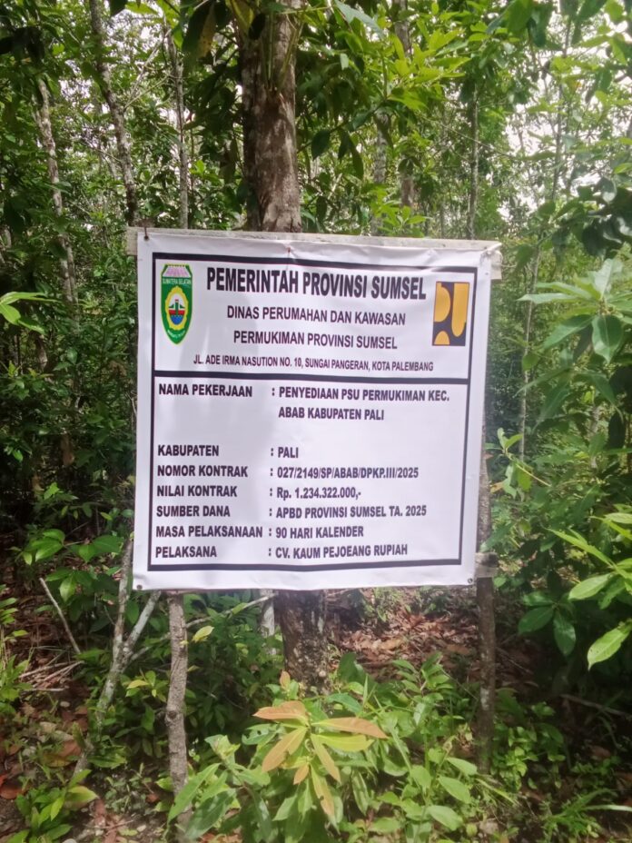 Pengecoran Jalan Mengundang Kontroversi. ( Propinsi Sumsel.) Kontrak pekerjaan penyediaan PSU ( Prasarana, Sarana, dan Utilitas) Permukiman di Kecamatan Abab, Kabupaten PALI, Sumatera Selatan, telah ditandatangani Dengan Nilai Kontrak Sebesar Rp 1.234.322.000, ( Satu Meliar Dua ratus Tiga Puluh Empat Juta Tiga Ratus Dua puluh dua Ribu Rupiah ) Sumber Dana APBD Provinsi Sumatera Selatan tahun 2025.