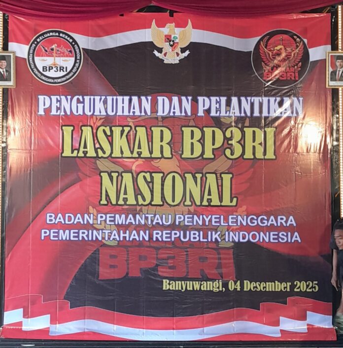 Banyuwangi — Acara pengukuhan dan pelantikan organisasi Laskar Badan Pemantau Penyelenggara Pemerintah Republik Indonesia (BP3RI) Banyuwangi di laksanakan di warung Seblang, jln krajan timur, desa Padang, kec Singonjuruh, digelar pada kamis, 04/12/2025. Prosesi ini dipimpin langsung oleh Ketua BP3RI, Sugeng Setiawan, SH, dan berlangsung tertib serta penuh khidmat.