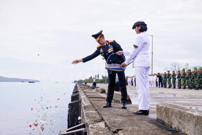 TNI AL, Ambon | warta.in – Komandan Komando Daerah Angkatan Laut (Dankodaeral) IX Laksamana Muda TNI Hanarko Djodi Pamungkas, S.H., menghadiri Upacara Tabur Bunga di Laut dalam rangka Hari Pahlawan 10 November 2025 di Dermaga Kesatrian Tawiri Kodaeral IX, Senin (10/11/2025).