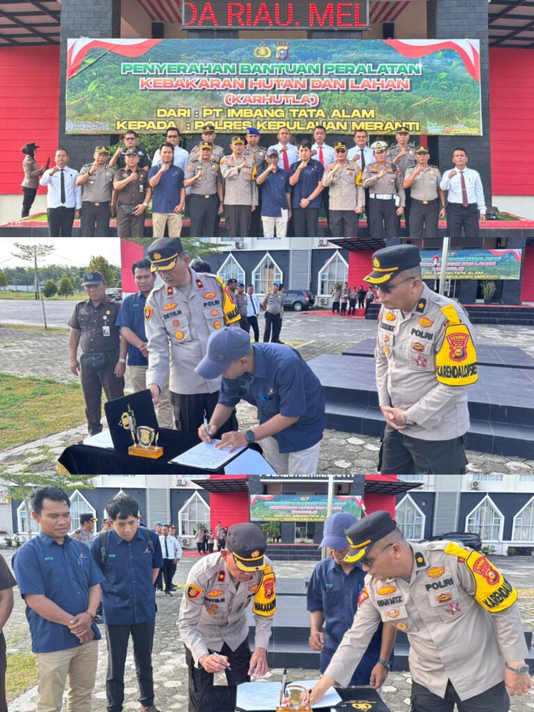 MERANTI — Upaya pencegahan kebakaran hutan dan lahan (karhutla) di Provinsi Riau terus diperkuat melalui kolaborasi antara kepolisian dan pihak swasta. Polres Kepulauan Meranti menerima bantuan peralatan penanggulangan karhutla dari PT Imbang Tata Alam pada Senin (9/2/2026) pagi.