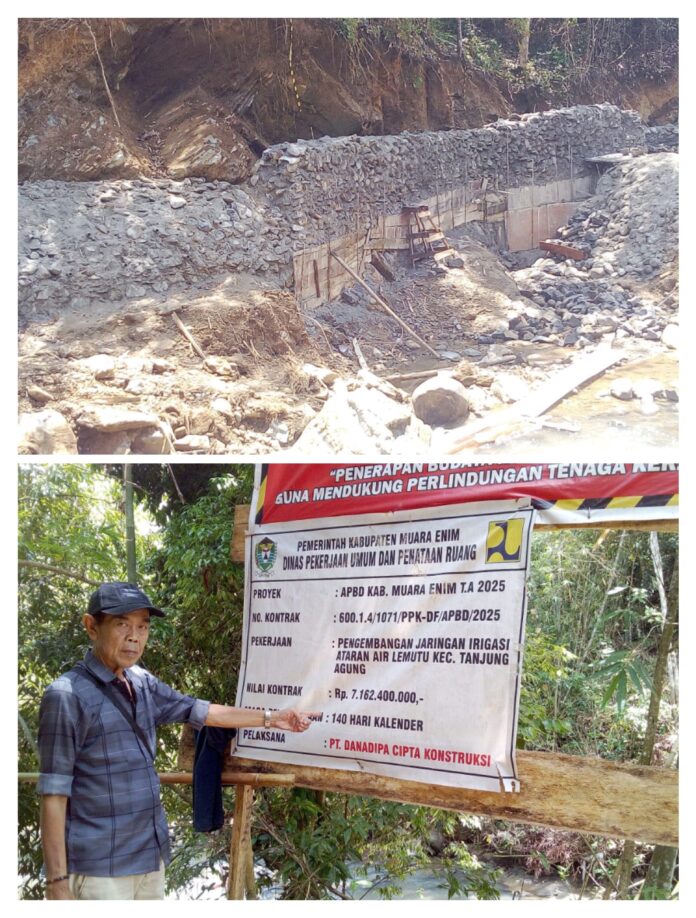 Warta In,”Muara enim.(sum sel) Desember 08/2025.Pembangunan Pengembangan Irigasi diataran air lemutu didesa tanjung bulan/sugihan diduga ada galian C elegal.