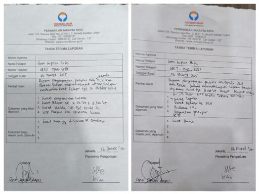 “Hari ini kami menyampaikan dua surat laporan pengaduan Maladministrasi yang diduga telah dilakukan oleh Kepala Dinas Lingkungan Hidup Kabupaten Bekasi kepada Ombudsman, yaitu surat dengan register 001.06.03/Srt.Lapdumas/POKMASLH/2025 dan surat:002.06.03/Srt.Lapdumas/POKMASLH/2025, perihal Laporan Pengaduan Masyarakat terhadap Pelaksanaan Pelayanan Publik Pada Dinas Lingkungan Hidup Kabupaten Bekasi,” ucap pria yang akrab disapa Hakim itu kepada wartawan pada Kamis, (6/3/2025).