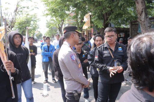 Wakapolres Lamongan, Kompol Jodi Indrawan, S.I.K. tampak langsung melakukan dialog dan komunikasi terbuka dengan perwakilan massa aksi.