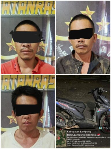 Lampung Barat,Warta in..– Tim Tekab 308 Presisi Polres Lampung Barat bersama Unit Reskrim Polsek Balik Bukit berhasil mengamankan tiga pelaku pencurian kendaraan bermotor (curanmor) pada Rabu, 15 Oktober 2025, sekitar pukul 16.30 WIB. Ketiga pelaku masing-masing berinisial S, ES, dan H ditangkap di wilayah hukum Polres Lampung Barat beserta dengan barang bukti 1 (satu) unit sepeda motor Honda Beat.