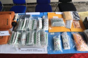BEKASI – Polres Metro Bekasi Kota berhasil menggagalkan peredaran narkotika jenis ganja seberat 3.059,23 gram (3 kg) dalam pengungkapan kasus yang dilakukan di wilayah Depok. Dua orang tersangka ditangkap, sementara satu lainnya masih buron.