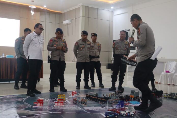 Sementara itu, Kabag Ops Polres Ogan Ilir Kompol Georgia Absalom Sakul, S.I.K dalam paparannya menjelaskan bahwa Tactical Floor Game (TFG) merupakan metode simulasi taktis yang menggunakan peta maket, denah lokasi, serta sketsa visual guna menggambarkan situasi riil di lapangan.