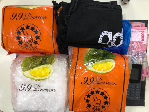 “Di dalam tas tersebut, ditemukan 2 bungkus plastik merk 99 Durien yang diduga berisikan sabu terbalut plastik assoy warna biru dan hitam dan sebungkus plastik merk 99 Durien yang juga diduga berisikan sabu,” urai Kasat.
