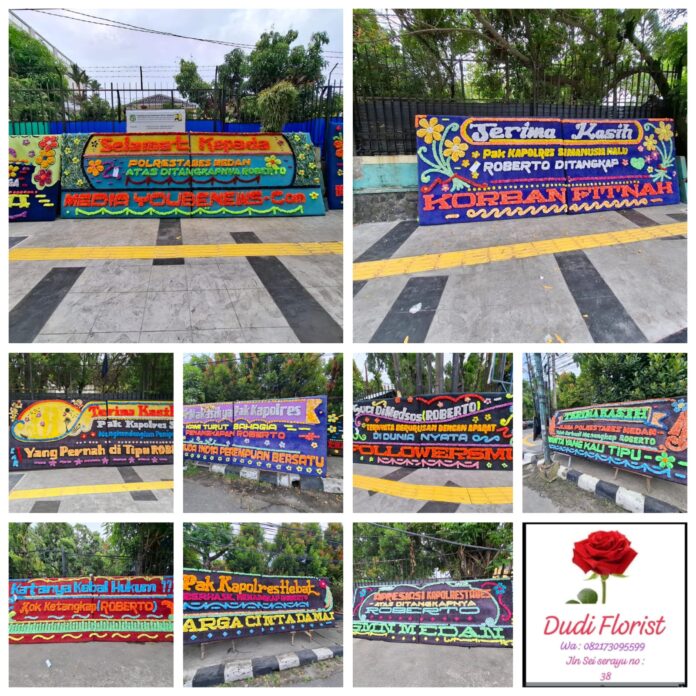 “Iya benar, kami dibanjiri orderan papan bunga untuk dikirim ke Polrestabes Medan. Pemesannya berasal dari berbagai elemen masyarakat dan komunitas yang ingin menyuarakan apresiasi mereka,” ungkap Dudi Efni
