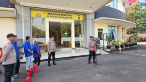 KOTA BEKASI – Polsek Medansatria menggelar pelatihan penggunaan Alat Pemadam Api Ringan (APAR) bagi seluruh anggota Polsek Medansatria. Kegiatan ini dilaksanakan di halaman Polsek Medansatria, Kota Bekasi, Rabu (21/5).
