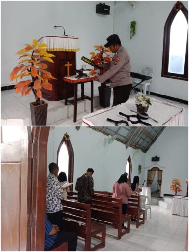 Kegiatan pengamanan Ibadah umat Kristiani di Gereja GKJTU dan GJWI yang bertempat di Desa Ngasemlemahbang Kecamatan Ngimbang dalam persembahyangan Minggu pagi umat Kristiani digereja GKJTU dan GJWI Desa Ngasemlemahbang