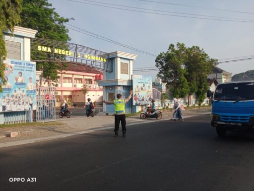 LAMONGAN//Warta.in –Anggota jaga Polsek Ngimbang dalam rangka memberikan pelayanan kepada masyarakat yang berkativitas pagi hari di jalan raya sekaligus mengurai kemacetan dan antisipasi kecelakaan yang sering terjadi tempat keramaian seperti di Jalan Raya SMAN 1 Ngimbang Kecamatan Ngimbang,Senin (29/09/2025)pukul 06.00 WIB