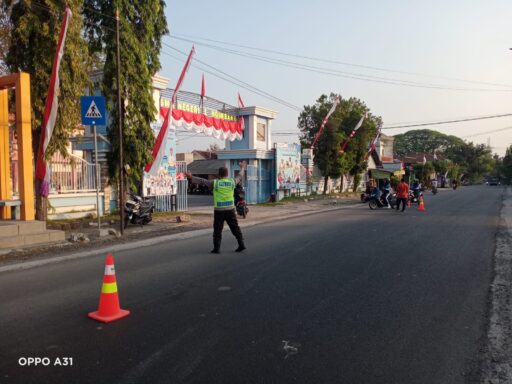 LAMONGAN//Warta.in –Anggota jaga Polsek Ngimbang dalam rangka memberikan pelayanan kepada masyarakat yang berkativitas pagi hari di jalan raya sekaligus mengurai kemacetan dan antisipasi kecelakaan yang sering terjadi tempat keramaian seperti di Jalan Raya SMAN Ngimbang Kecamatan Ngimbang,Jum’at(15/08/2025)pukul 06.30 WIB