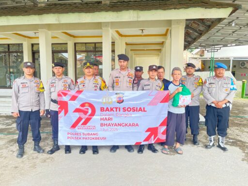 Warta. In. Subang. – Polsek Patokbeusi, Polres Subang, melaksanakan kegiatan bakti sosial dalam rangka menyambut Hari Bhayangkara ke-79 dengan tema “POLRI UNTUK MASYARAKAT”. Kegiatan ini berupa pembagian sembako kepada para Marbot Masjid di beberapa masjid yang ada di wilayah hukum Polsek Patokbeusi.
