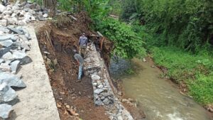 Reaksi cepat dan tanggap, longsor bantaran sungai batukarut, langsung di bangun, dengan pondasi bahan yang berkualitas, demi menjaga mutu, sehingga dapat bertahan lama terhadap aliran sungai atu karut, di atasnya, pohon pisang pun kuat menahan tebing sungai batukarut.