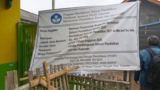 Warta In Jabar, Ciasem Subang – Proyek Revitalisasi Satuan Pendidikan TKIT Al-Ma’arif Su’ada di Desa Ciasem Tengah, Kecamatan Ciasem, Kabupaten Subang, yang bersumber dari APBN Tahun Anggaran 2025 dengan nilai pagu Rp 406.180.000, kembali disorot.