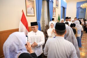 Wartain Banten | Pemerintahan | 22 Maret 2026  — Ratusan warga dari berbagai kalangan tampak antusias menghadiri acara halalbihalal bersama Gubernur Andra Soni di Gedung Negara Provinsi Banten, Kota Serang, Sabtu (21/3/2026). Momentum Idulfitri 1447 Hijriah ini dimanfaatkan masyarakat untuk bersilaturahmi sekaligus merasakan kebersamaan dengan pemimpin daerah dalam suasana hangat dan penuh kekeluargaan.