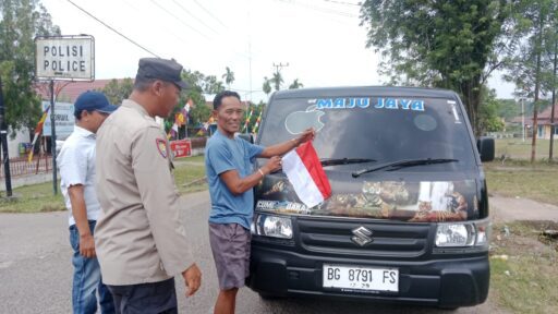 Sat Intelkam Polres Ogan Ilir dan Polsek Muara Kuang Pasang Bendera Merah Putih di Kendaraan Sambut HUT RI ke-80