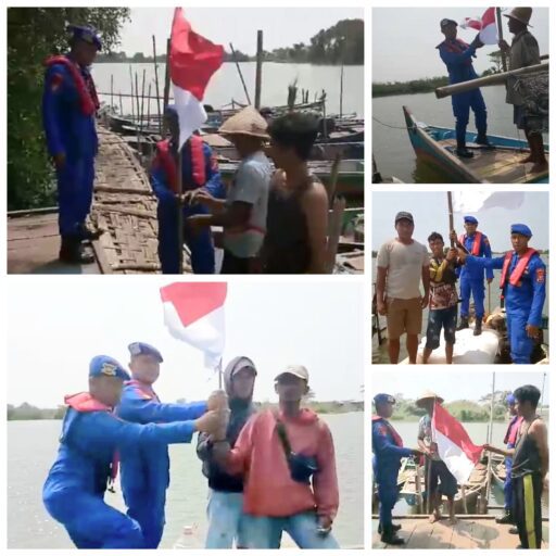 Selain itu, anggota Satpolairud juga membagikan bendera merah putih dalam rangka menyambut hari Kemerdekaan Republik Indonesia ke-80, sembari memberikan himbauan Kamtibmas (Keamanan dan Ketertiban Masyarakat) untuk memastikan situasi tetap aman dan kondusif di wilayah dermaga Tlocor dan sekitarnya.