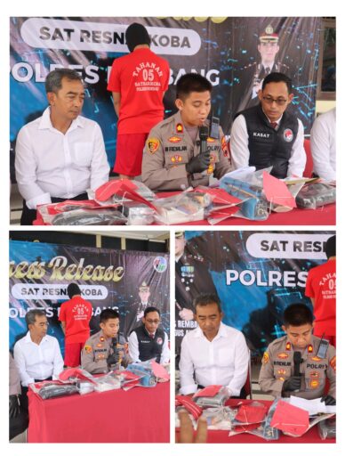 Wakapolres Rembang Kompol M. Fadhlan, S.H.,S.I.K.,M.H. saat konferensi pers pada Senin (11/8/2025) mengungkapkan, Dari tangan tersangka, petugas menyita barang bukti satu paket sabu seberat ±0,40 gram, satu pipet kaca bekas pakai, satu tutup botol merk Aqua berlubang dua, delapan butir pil berlogo “Y”, serta satu unit ponsel Infinix warna ungu,” terangnya.