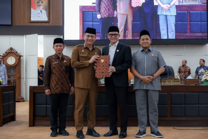 Wartain Banten | Pemerintahan | 09 Oktober 2025 — Sekretaris Daerah (Sekda) Provinsi Banten, Deden Apriandhi Hartawan, mewakili Pemerintah Provinsi (Pemprov) Banten dalam Rapat Paripurna DPRD Provinsi Banten yang membahas Rancangan Peraturan Daerah (Raperda) tentang perubahan bentuk hukum PT Penjaminan Kredit Daerah (Jamkrida) menjadi Perseroan Terbatas Penjaminan Kredit Daerah (Perseroda). Rapat tersebut digelar di Gedung DPRD Provinsi Banten, Kawasan Pusat Pemerintahan Provinsi Banten (KP3B), Kota Serang, pada Kamis (9/10/2025).