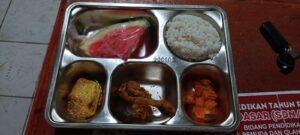 Para siswa mengaku sangat menyukai menu yang diberikan. “Enak, ayam gorengnya gurih dan ada semangkanya juga,” cetus salah satu siswi sambil tersenyum.