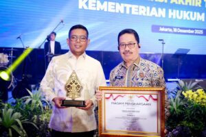 Penghargaan tersebut diserahkan langsung oleh Menteri Hukum RI, Supratman Andi Agtas, kepada Gubernur Banten Andra Soni dalam kegiatan Rapat Koordinasi Pengendalian Kinerja dan Refleksi Akhir Tahun Kementerian Hukum 2025 yang digelar di Grand Mercure Kemayoran, Jakarta, Kamis (18/12/2025).
