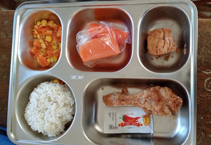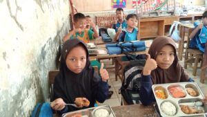 Sejak pagi, para siswa sudah terlihat antusias menunggu giliran saat jam istirahat. Dengan tertib, mereka berbaris untuk mengambil makanan yang telah disiapkan. Menu yang disajikan sederhana namun bergizi, terdiri dari nasi, lauk pauk, sayuran, dan buah segar. Setelah itu, anak-anak duduk bersama di ruang kelas dan halaman sekolah untuk menikmati hidangan sambil bercengkerama dengan teman-teman mereka.