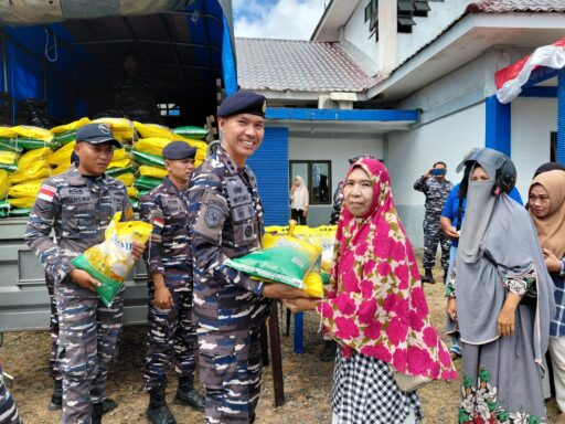 TNI AL, Simeulue | warta.in – Berlokasi di depan Kantor Primkopal Lanal Simeulue, Komandan Pangkalan TNI Angkatan Laut Letkol Laut (P) Wisnu Pryangga N, S.T., M.Tr. Opsla., beserta Prajurit Lanal Simeulue melaksanakan kegiatan penyaluran beras Stabilisasi Pasokan dan Harga Pangan (SPHP) melalui program Gerakan Pangan Murah (GPM) yang dilaksanakan atas kerjasama dengan Perum Bulog di Kabupaten Simeulue, Provinsi Aceh, Selasa (2/9/2025).